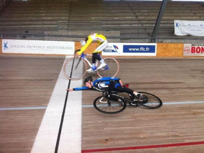 カラダの一部でもゴールラインを越えれば勝ちとか。