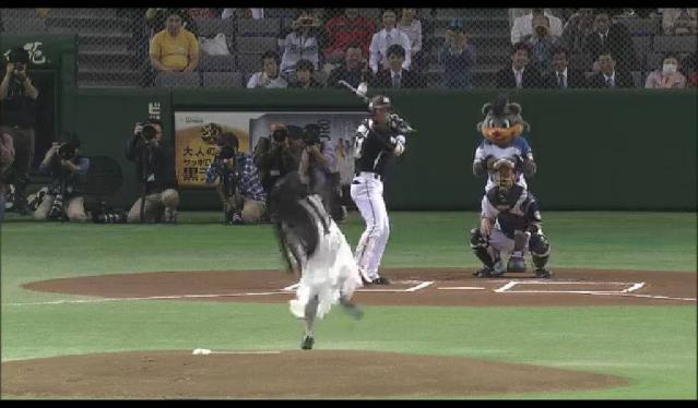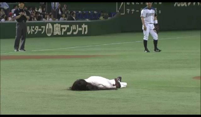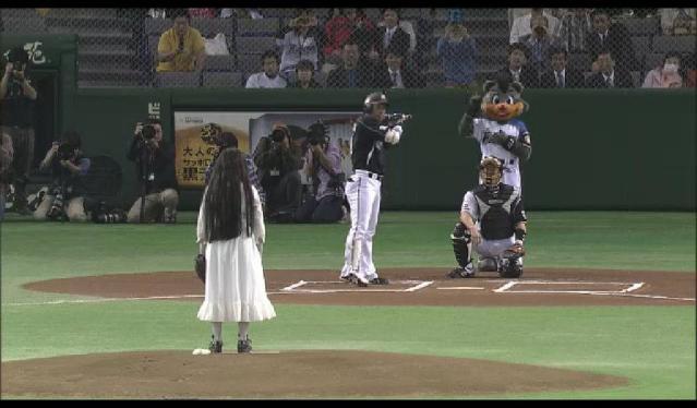 日本ハムVsロッテ(25日、東京ドーム)の始球式に、ホラー映画「貞子3D」に出演する「貞子」が登場した。