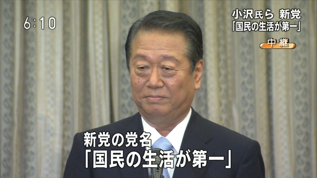 「国民の生活が第一」、ほんの少し前までは民主党の党員だった者たちにこんな台詞を吐いて欲しくないものだ。いや台詞ではなくて党名なので尚更タチが悪い。今後ニュースなどでこの党名が連呼されるのかと思うと今から気分が悪くなる。