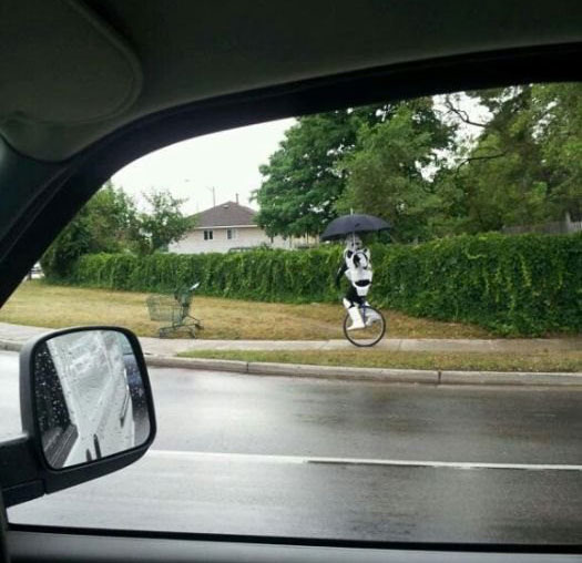 電話(インカム)で「今、傘をさしたストームトルーパーが一輪車に乗っている!」と言っても信じてもらえなかったので撮影。本当だったんだってば!