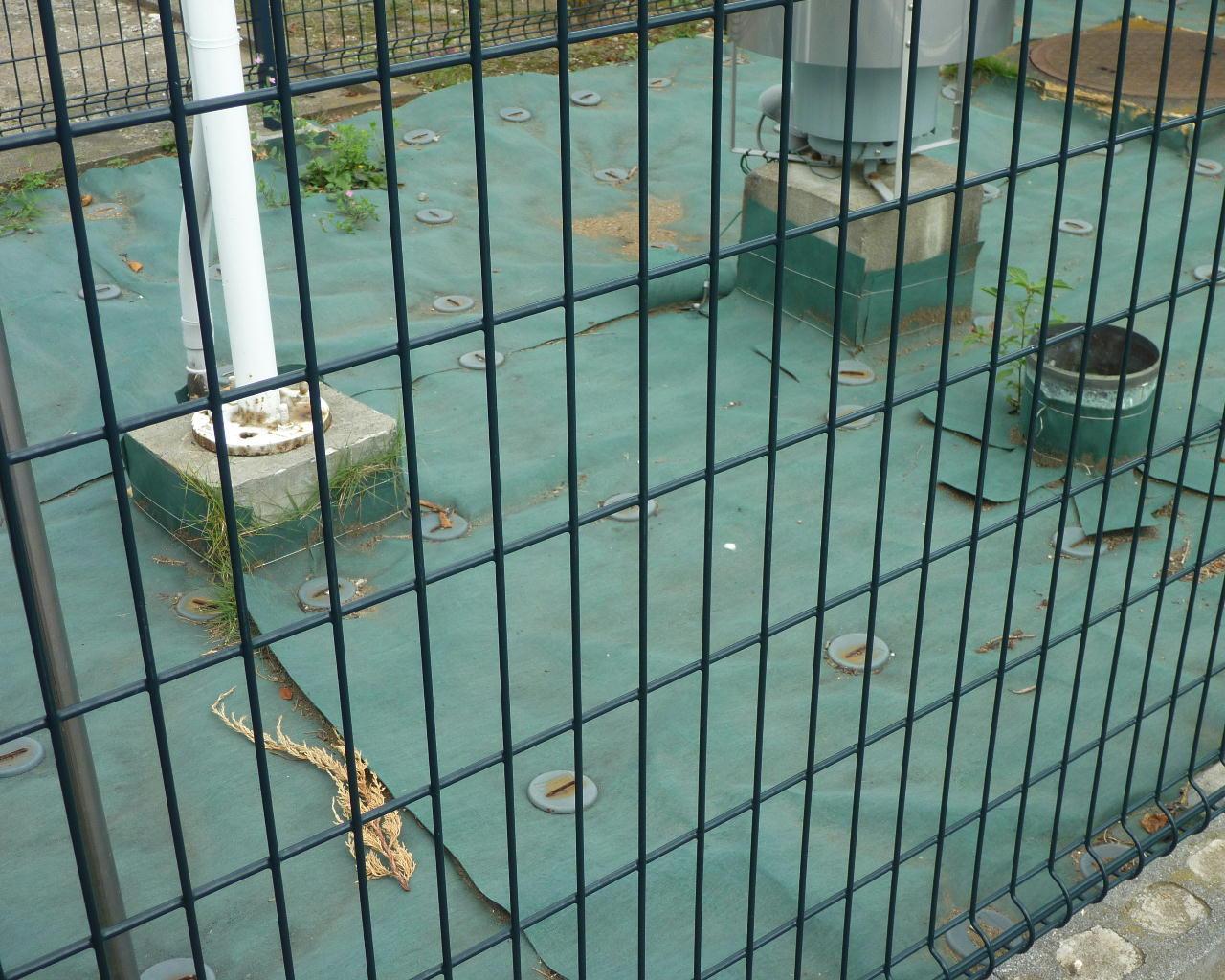 地面が草っ原である場所と舗装された路面に緑色のシートのようなものをかぶせてある環境とでは日光の照り返しなどによる温度上昇が大きく異なるはず。