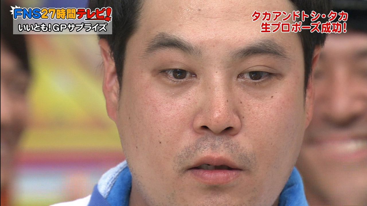 さすがにタカアンドトシのタカに事前に承諾を取っているのだとは思うけれど、ただの生番組の一企画としてプロポーズをさせられたタカには同情する。放送中は終始この表情だったのだから周囲の出演者たちも察してあげれば良かったのにずっと笑っていた。こういう企画は面白いのだろうか?