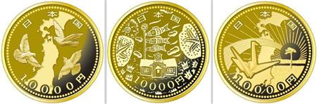 『記念貨幣は、国債を3年間保有した人に、保有残高1千万円につき一万円金貨1枚、100万円につき千円銀貨1枚が贈られる。』