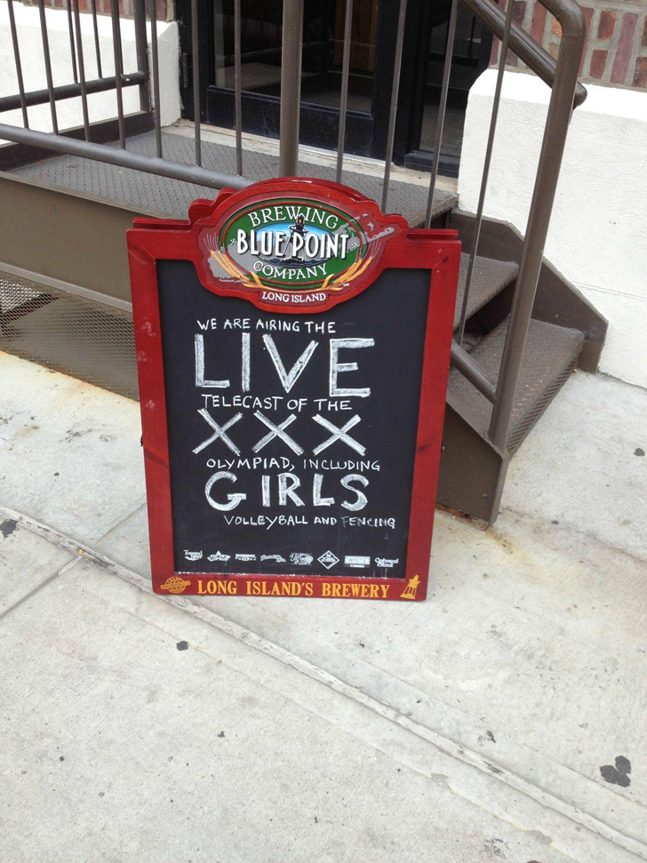 VOLLEYBALL AND FENCING.(女子バレーやフェンシングの試合など第30回オリンピックのテレビ中継を店内で流しています。)