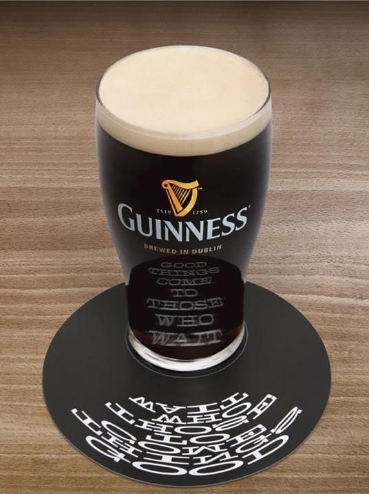グラスのビールが黒いからこそ反映した文字が読み取れる。