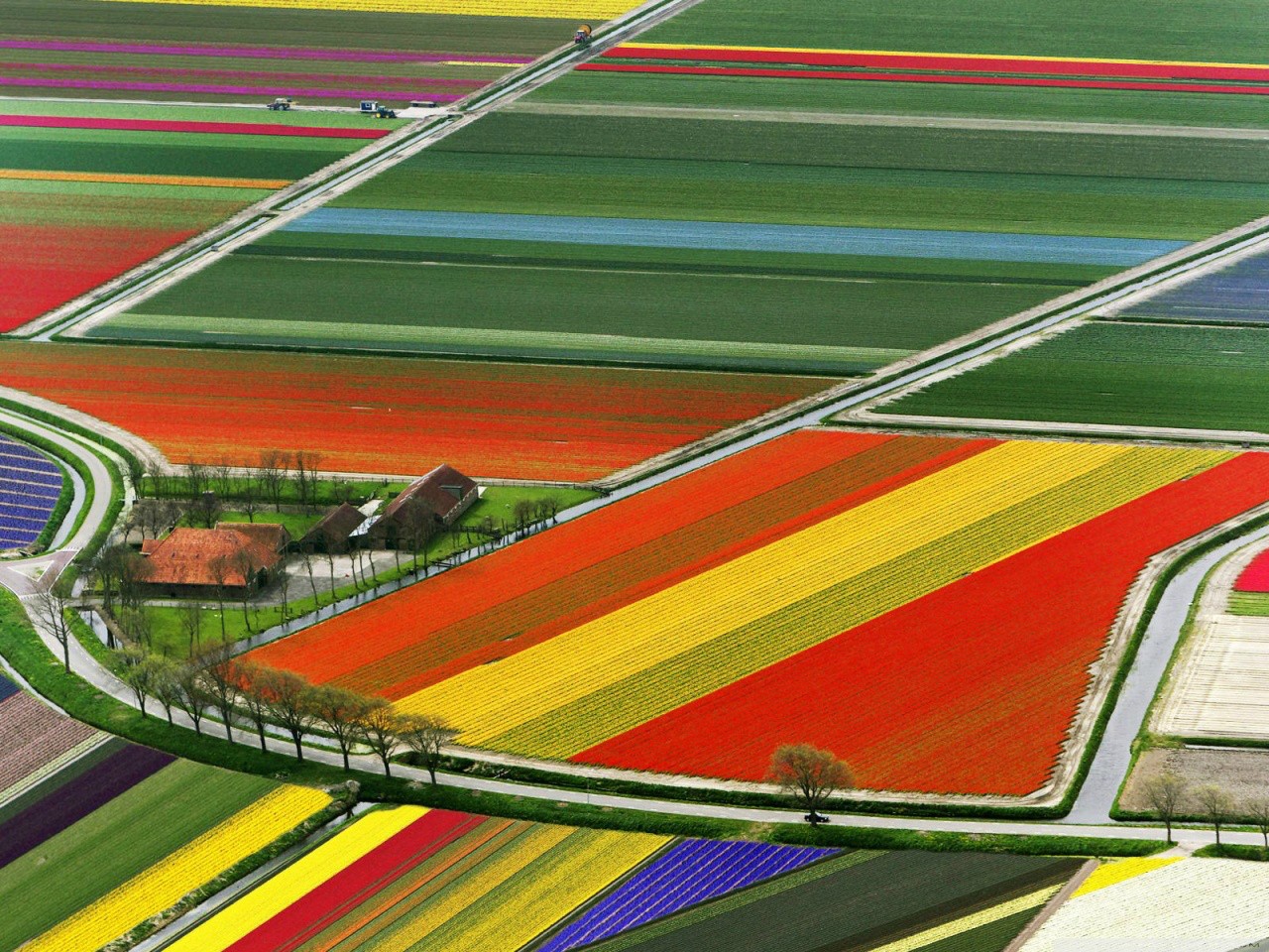 あるいはヘリからでしょうか、この高さの視点から花畑を見る機会はなかなかありませんが、とても色鮮やかできれいですね。