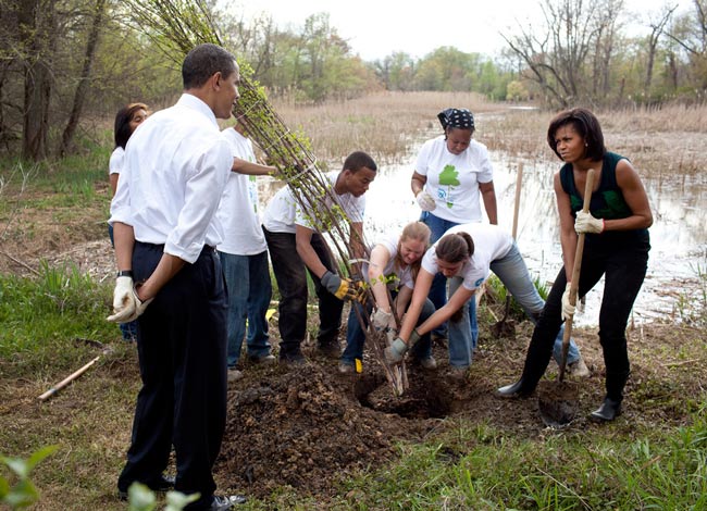 確かにオバマ夫人の方が腕力がありそうな気がする。