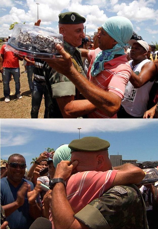 将軍とハグするデモ参加者たち。将軍は感動して号泣。人間こうでなくちゃ!