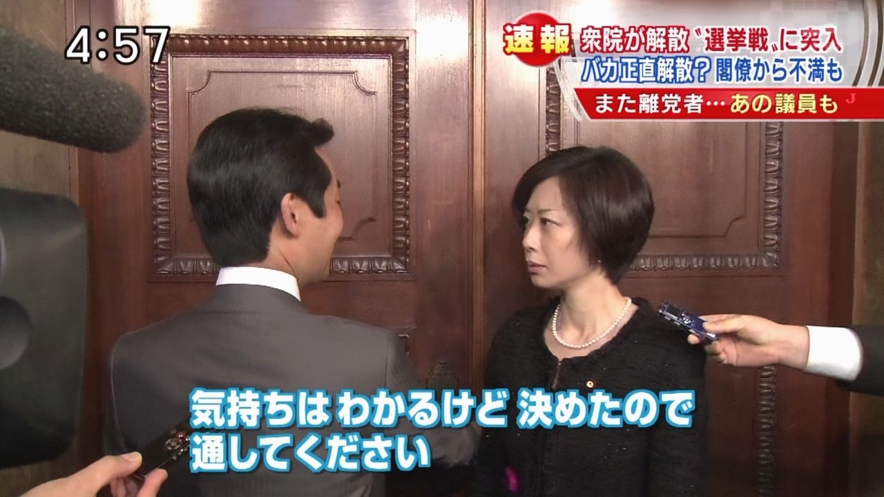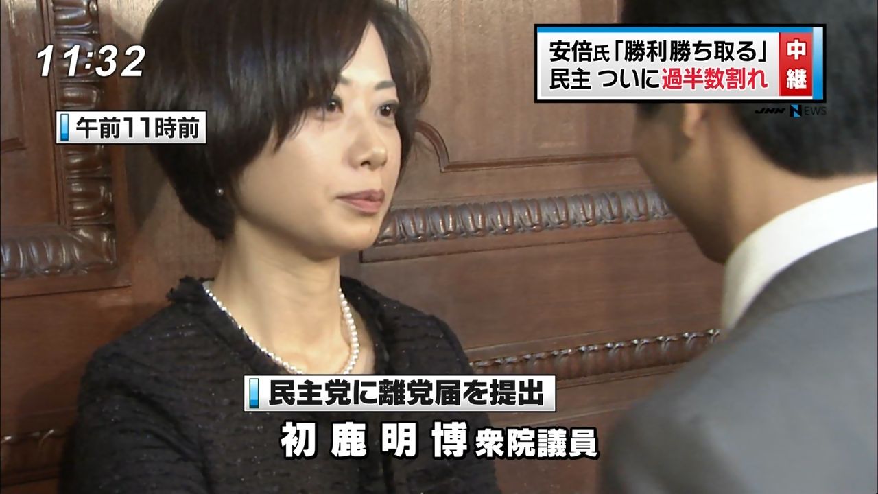 先に言っておくと、俺はこういう女が大嫌い。女の涙が武器だと思っているようなヤツこそが女性の地位を下げていると思うから。ちなみにこの止められている初鹿という議員は自身のウェブサイトに北朝鮮訪問&大絶賛といった内容を載せて後でそれらを削除したという民主党らしい議員。下の名前が明博というもの分かりやすい。そんな人材を必死で引き留めようとする民主党も非常に分かりやすい組織だ。よくこんな党が政権与党になったものだと今更ながらに思う。