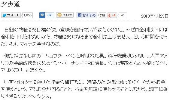 実在する中日新聞のコラム、バーナンキへの幼稚な批判に加えて