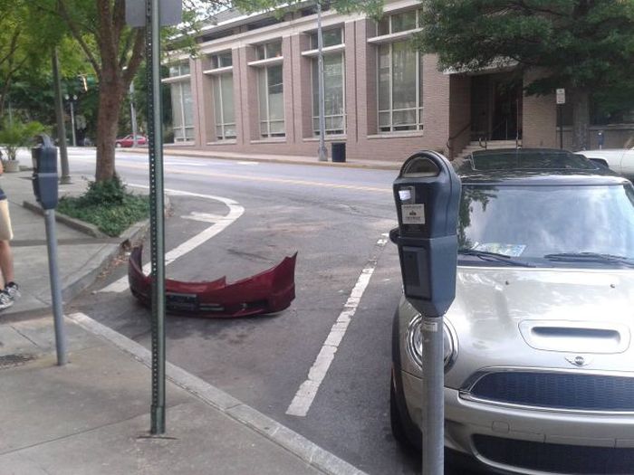 弱肉強食のアメリカ社会ではその場所に駐車したいドライバーがこのバンパーを見ても「なんだこのゴミ、邪魔くせぇな!」とクルマでひき潰してそのままパーキングします。そしてそこから出るときなんてグシャグシャになったバンパーのことなんて思い出しもしないままドライバーは更にバンパーをひき潰して去っていくはずです。そして駐車場のオーナーはそのバンパーの残骸に対して駐車場を占有しているとついでにとなりのスペースに飛び散った残骸を含めて損害賠償請求を起こすことでしょう。それがアメリカ社会です!(キッパリ)