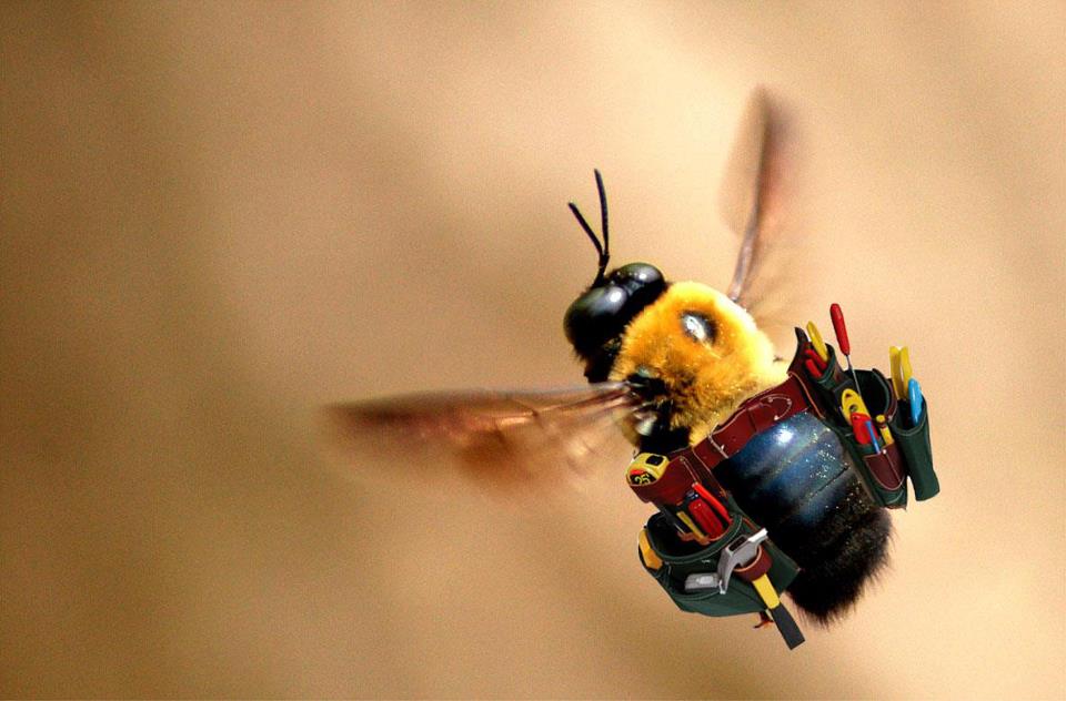 現場に急ぐ働き蜂を接写。