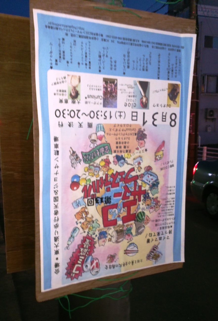 まぁ、こういうドジなところもこの祭りらしい。告知で第13回と書いてあったがさっき見た会場の横断幕には第14回とあった。いいんだ、そのくらいのミスは!ドンマイ!東小金井ではそんなことは日常さ!そもそも「エコ」って言い出してから十数回もやっていたっけか?あ・や・し・い。