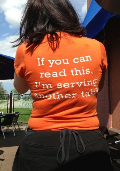 『この背中の文字が読めるってことは私は他のテーブルにサービス中です。』