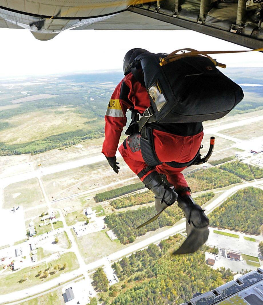 災害救助の際に航空機で現地に駆けつけ、そのまま河川や海に着水して救助にあたる装備。震災時に孤立した橋や中洲、また船舶などへも迅速に救助にあたれる。軍隊で言うところの衛生兵のような救命措置が行える隊員もこの方法で送ることができる。また大火災現場のような真上や付近の陸上からの接近が困難な場所が水沿いのときにも有効。着水してそのまま水中から現場に接近できる。重装備の降下、そして水面への着水には高度な降下スキルが必要となる。人材育成が急務だ。