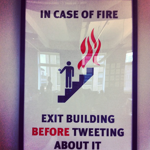 『ツイートをする前に建物から逃げましょう』