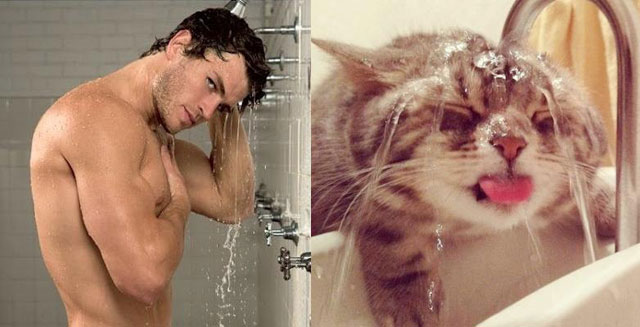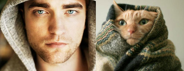 男性モデル vs 猫