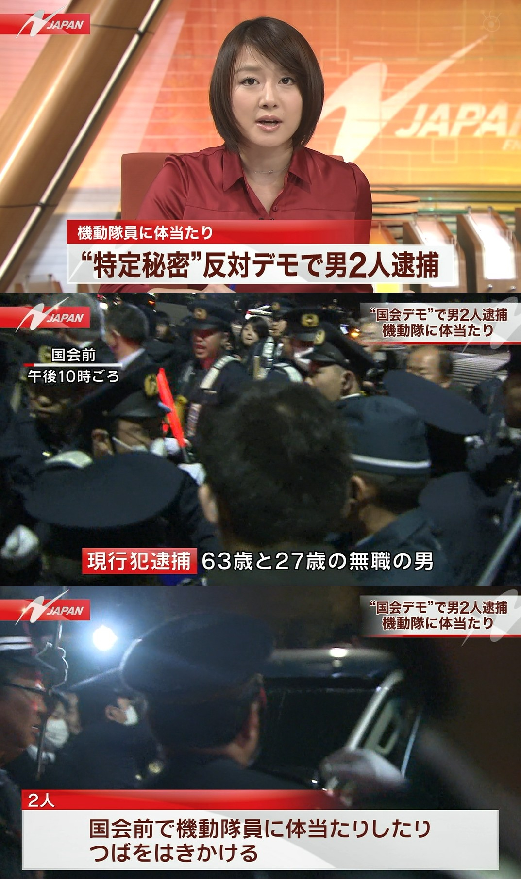 国会前で警察官に暴力を振るい唾を吐きかけた63歳と27歳の無職の男たちがマスコミが実名報道をしないまま現行犯逮捕された。デモを支持している人々も含めて、この現状を見てもなにも疑問に思わず、そして法案反対派の実態に疑問を持たない人間がいたら危機感が無さ過ぎる。どう見ても日本にとって必要であり今決めるべき法案を通さないように妨害している日本に仇なそうとしている組織の数々が暴れているってことだろうに。