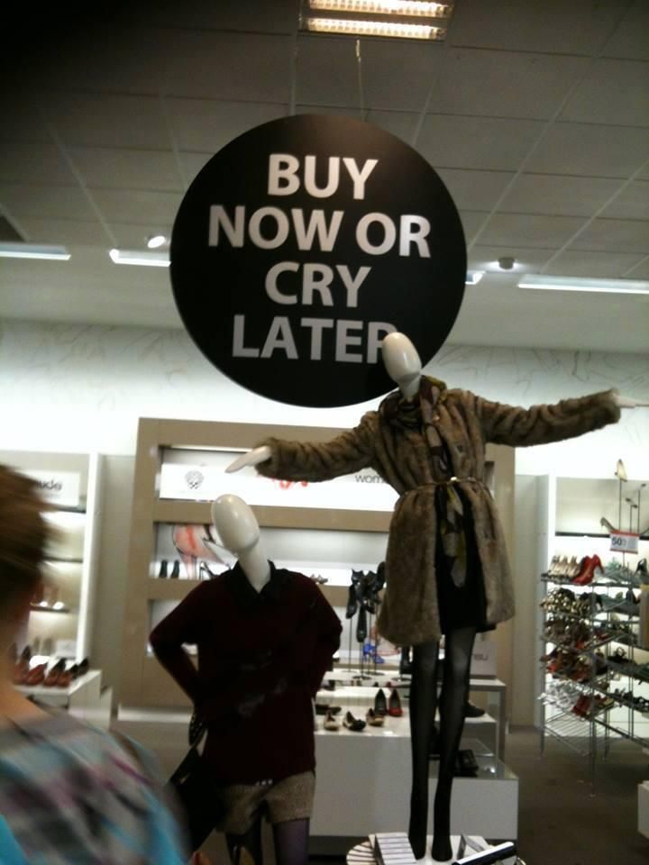 「今買うの?それともあとで泣くの?」