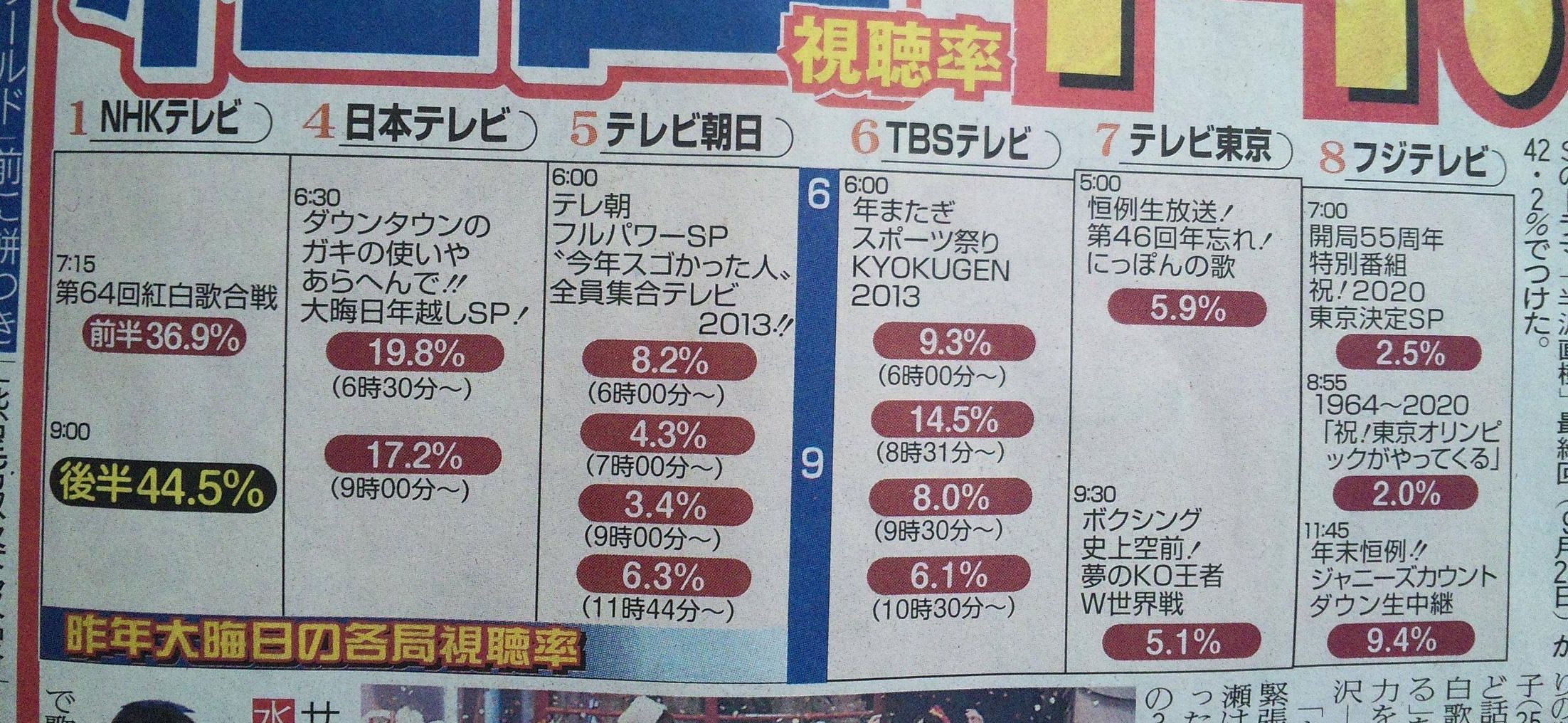 ってテレ東を低視聴率の基準にするのはテレ東に失礼だからやめれwwww(私もだがw)
