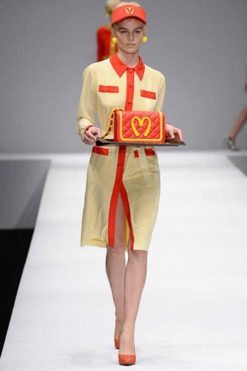モスキーノでしょ?始めにバッグを見た時、マクドナルドの宣伝かと思いましたw プロジェクトランウェイのデザイナー達は、アイデアを一生懸命考えて制作してるのに、モスキーノは、パクリ? このサインは、エディの駄作映画である星の王子NYに行くの中で、マクドナルドをパクってた経営者で、王子と恋仲になる女性の父でもあるマクドゥーウェルさんのお店のサインにそっくりですよw