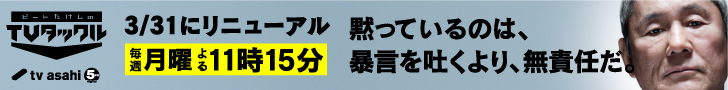 この「黙っているのは、暴言を吐くより、無責任だ」という宣伝コピーはビートたけしへの皮肉にしか見えない。長年、この番組でのビートたけしはまるで置物のようだ。