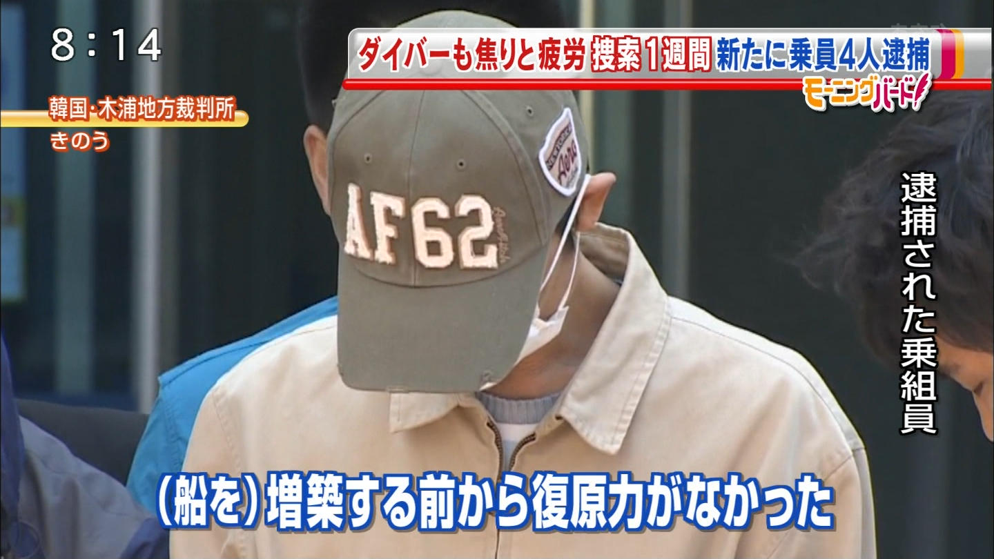 元々、増築する前から復元力が無いと判断していたのならば増築を進め、そのまま運航させていた会社もこの乗組員も今回の人災に加担していたことになる。呆れた。予想はできていたとはいえ、こういう時にまでもなんとか元々の船、即ち日本で造船された船に問題があったかのように証言するとは・・・・・。言うまでもないがセウォル号がセウォル号になる前、日本で運航されていたときには横転も転覆もしていない。