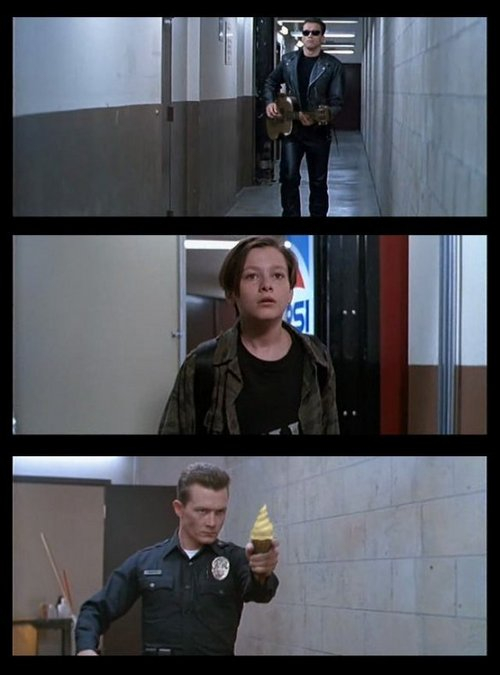 ちなみに次の「ターミネーター」ではT-1000でお馴染み、この最後のコマにいるロバート・パトリックが50歳くらいの年齢のままの姿で登場することがほぼ決まっているようです。どういう役柄かは不明ですが。