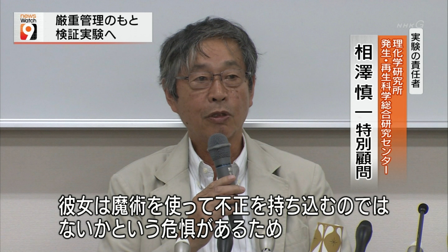 小保方さんはもはや魔女のような扱い。なにかを「持ち込む」という可能性には注意しているということを発表しておかないわけにはいかない。そんな慎重な言葉選びの結果が遂に魔術になってしまった。