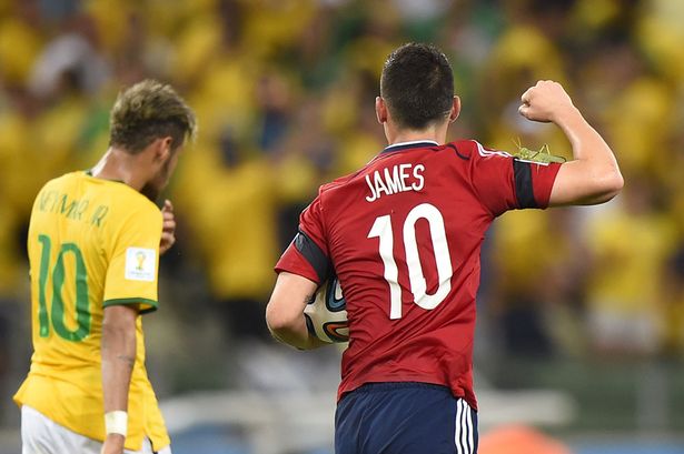 コロンビアのエースであるハメス・ロドリゲスの腕にバッタが着地。