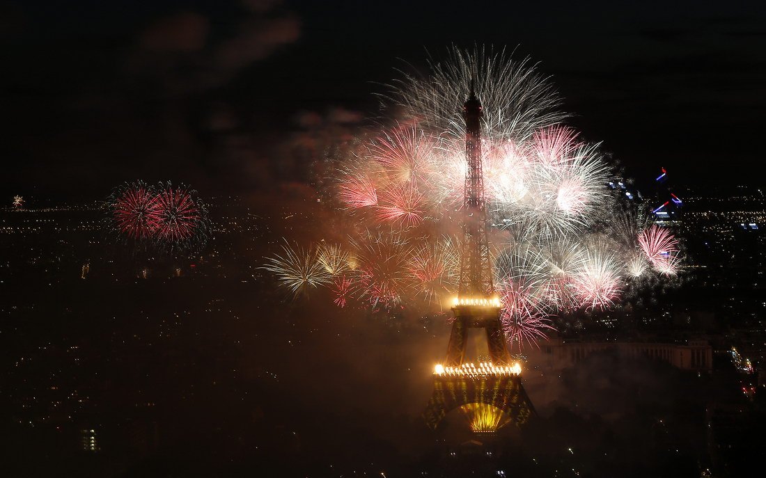 余りにも美しく幻想的なエッフェル塔と七色の光の交錯。