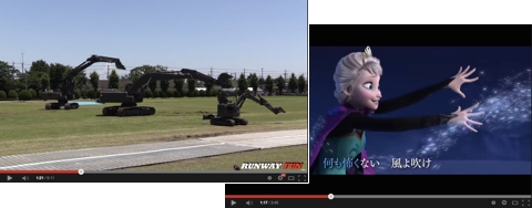陸上自衛隊古河駐屯地・創立60周年記念行事で披露されたパワーショベル3台による「アナと雪の女王 Let It Go」の振り付け、ちゃんと実際の映画での振り付けと同じように動いている。