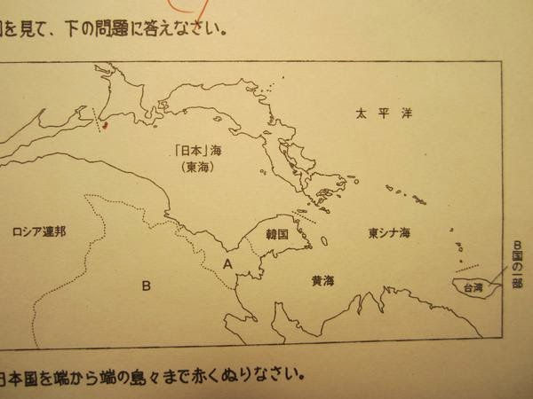更に台湾についても「B国(中国)の一部」とわざわざ表記している。この地図には教員の明らかな恣意が存在する。