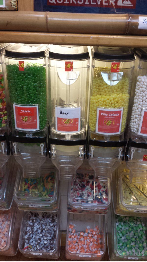 お酒風味のジェリービーンズ。マルガリータ(上段・緑)とピニャコラーダ(上段・黄色)の間にあるビールは完売。