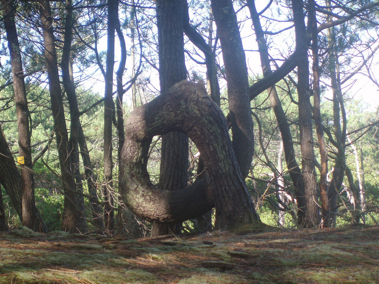 おそらく倒木が上に向かって伸びようと曲がったのだと想像するのですが、今、下に向かって伸びていた時期、根元はどこに??? 横倒しでなく、逆さ倒しになった時期があった??? 謎い。。。