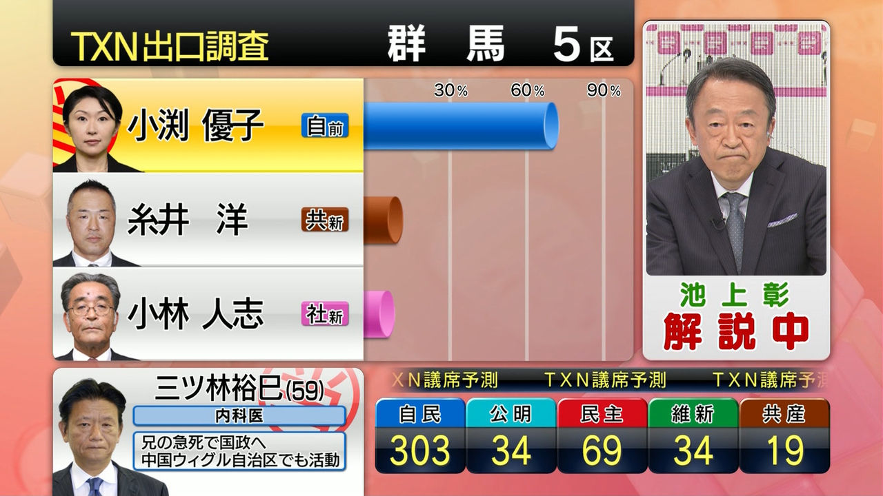 群馬5区で小渕優子候補が圧倒的多数で当選。自民党はこの候補者を公認している。岩手4区では小沢一郎候補が辛勝とはいえ当選。あの選挙区の有権者たちは東日本大震災の時のこの候補者の対応すらも忘れてしまっているようだ。日本全体、つまり国民投票で「この候補が国政に要りますか?」と投票したら先ず当選はしないであろう候補者たちが小選挙区制度では次々と当選する。どぶ板選挙なんてものが通じるのではなく、候補者の資質と能力、そして政策こそが投票への判断材料となるべきだ。