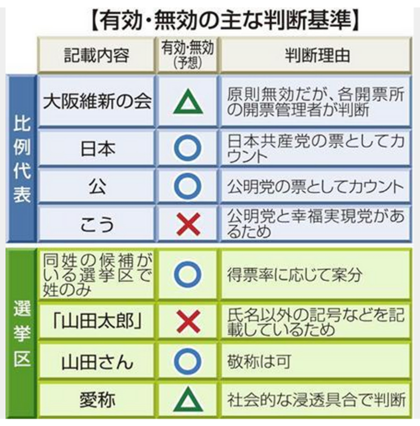 比例で「日本」と記入された投票券は基本的に日本共産党の得票となる模様。