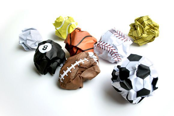 丸めるとサッカーボールに。他の裏面にはバスケットボールの模様。