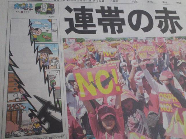 この有り様だ。黒いシルエットは明らかにオスプレイを連想させる。非常に下劣な表現だ。