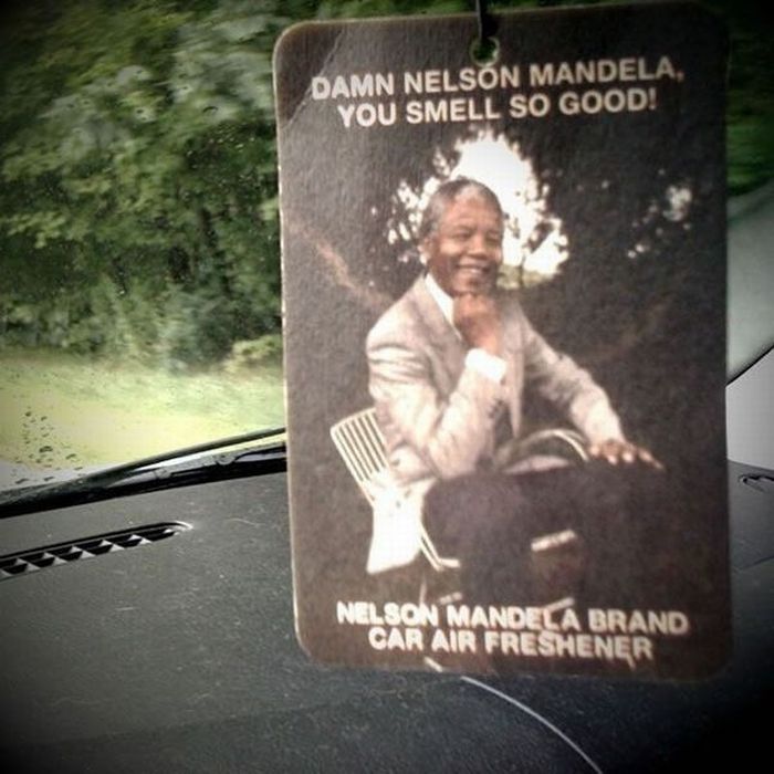 本当に南アフリカで売っているクルマ用の芳香剤。ネルソン・マンデラは良い匂いらしい。